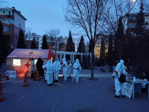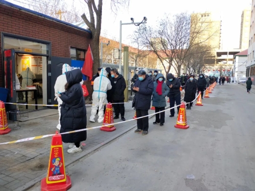當(dāng)前,內(nèi)蒙古自治區(qū)疫情防控形勢(shì)依然嚴(yán)峻,包頭市中風(fēng)險(xiǎn)地區(qū)已達(dá)7個(gè)。面對(duì)疫情,中國(guó)兵器工業(yè)集團(tuán)有限公司駐包頭單位積極行動(dòng),支援當(dāng)?shù)匾咔榉揽兀仓踩谰€。 凌晨集結(jié),投身核酸檢測(cè)工作 來(lái)自一機(jī)集團(tuán)、北重集團(tuán)、材料院52所包頭事業(yè)部的共計(jì)500余名志愿者密切配合包頭市防疫部門(mén)、街道社區(qū)進(jìn)行全員核酸檢測(cè),同時(shí)做好信息登記、維護(hù)秩序、宣傳政策等工作,確保核酸檢測(cè)全覆蓋。2月20日凌晨,在零下20度的寒風(fēng)中,志愿者全部在支援地集結(jié)到位,做好核酸檢測(cè)前的相關(guān)準(zhǔn)備。 一機(jī)集團(tuán)黨員突擊隊(duì) 志愿者們搭建臨時(shí)帳篷,用圍擋封控家屬區(qū),配合醫(yī)護(hù)人員組織居民排隊(duì),有序進(jìn)行核酸檢測(cè)。檢測(cè)工作開(kāi)始后,志愿者們用溫暖的話語(yǔ)安撫居民們的情緒,引導(dǎo)居民有序入場(chǎng),檢測(cè)居民體溫,登記核對(duì)信息,轉(zhuǎn)運(yùn)檢測(cè)樣本。為了盡可能提高檢測(cè)工作效率,志愿者在各條核酸檢測(cè)通道指導(dǎo)群眾掃碼登記,一對(duì)一幫助老人、兒童等不便使用智能手機(jī)的群眾解決困難,使其能順利進(jìn)行核酸檢測(cè)。 逐戶上門(mén),確保應(yīng)檢盡檢 為確保所支援地區(qū)完成全員核酸檢測(cè)工作,志愿者自愿組隊(duì),挨家挨戶上門(mén)通知,進(jìn)行人員核對(duì),對(duì)于處在隔離期的居民以及行動(dòng)不便的老人、兒童采取了入戶核酸檢測(cè)。
